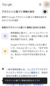 Google検索の検索結果が少なく表示される場合には「アカウントに基づく情報」の設定が自動的にオンになっている可能性があります。