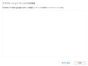 通常であれば画面共有ボタンをクリックしてグレーの状態になると、画面の共有方法の選択画面が表示されます。