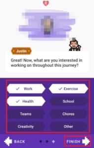 なお、複数選択できるので当て嵌まるものすべてにチェックを入れ、FINISHをタップしてください。