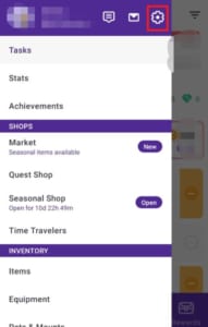 PC版Habiticaで日本語化するには、ページ右上にある人型アイコンを選択し設定をクリックしてください。