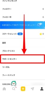 次に開いたプロフィールページを下へスライドし、サポートセンターをタップ。