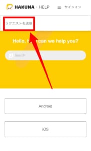 サポートセンターの画面が開かれますので、右上にある3本線のマークをタップ。するとリクエストを送信という表示が出てきますので、こちらをタップします。