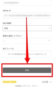 リクエスト送信用のフォーム画面が表示されますので、各項目に必要事項を記入した後、ページ1番下にある送信をタップすれば問い合わせ完了です。