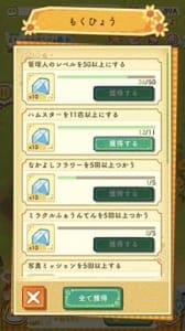 管理人レベルのミッションをクリアすると「じゅえる」が貰えるため、プレイヤーは管理人レベルを上げることを意識したプレイスタイルがスムーズにゲームを進められます。