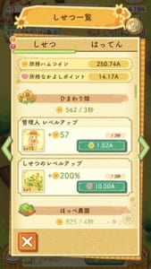 施設レベルが上がれば、コインの回収率が格段に上がるので、なかよしポイントをできるだけ多く集める環境を作りましょう。