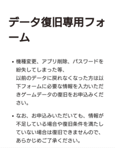 ユーザーIDなど細かい情報を覚えていないとゲームデータの復旧の全ての項目が埋められない