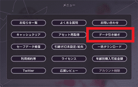メニューアイコンからデータ引き継ぎをタップしてください。