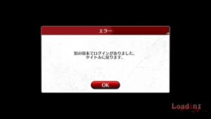 別端末でログインがありました。タイトルに戻ります。 | リトライ、キャッシュのクリア、時間を置く、その他端末ログイン確認 |