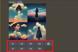 このうち上にあるU1~U4は、1から4番目の画像を高解像度化、更新ボタンは再度新しく4枚の画像を作成する機能を持ちます。