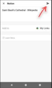 Notionアイコンを選択し、ページタイトル、保存先のワークスペース、ページを選び保存をタップしましょう。