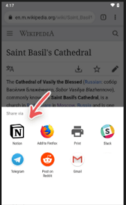 Android版は、ブラウザの共有機能に自動的に追加されます。