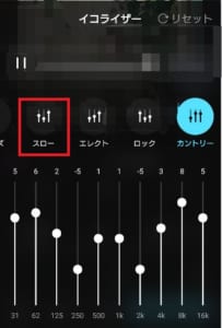 なお、イコライザーの調整をしている最中も音楽は流れているため、音の変化を聞きながら調整することも可能です。