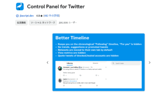 Control Panel for Twitterは、Twitter(現X)の使用体験を向上させるためのブラウザ拡張機能です。