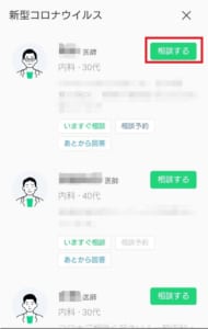 選んだら予約したい医師の「相談する」をタップします。