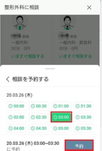 このとき、「相談予約」に色が付いている医師ではないと予約ができないことに注意しましょう。