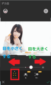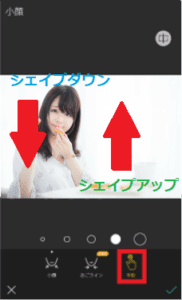 逆に身長を縮める加工をしたいときは、下にスワイプしていってください。