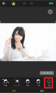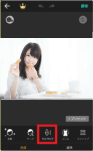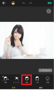 美顔と編集コンテンツを切り替えたいときは、下のタブをタップすればOKです。