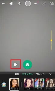 エフェクトやフィルターをかけて撮影したいときは、エフェクトを選択してからカメラや動画をタップするようにしましょう。