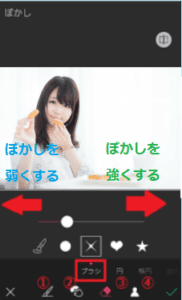 ぼかしでは、バーを左に動かすとぼかしが弱くなり、右に動かすとぼかしが強くなります。