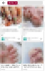 今回は、「投稿」から「ネイル」で検索をかけてみました。