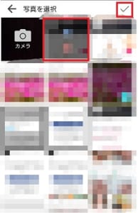 または、投稿タブからも可能です。写真を選択してアイコンをタップします。