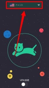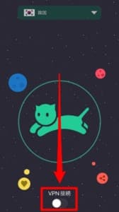 VPNネコを立ち上げた後、画面上部にある国名をタップします。表示された国名から韓国を選択。