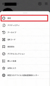 プロフィール画面からをタップし、メニューを開きます。