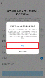 「プロアカウントに切り替えますか?」にOKをタップし完了です。