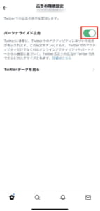 パーソナライズド広告の横のボタンが緑色の状態であればオンになっているので、ボタンをタップしてオフに切り替えてください。