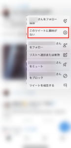広告に対するアクションを選択できるので、このツイートに興味がないをタップすれば完了です。