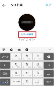 ハイライトの投稿時やカバー編集時にカバーを編集を選択し画像アイコンをタップしてください。