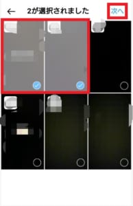 ハイライトを投稿するには、マイページタブから新規を選択しハイライトにまとめたい動画を選択して次へをタップします。
