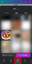 次に下部のメニューよりギャラリーをタップして画像を選びページに追加をタップします。