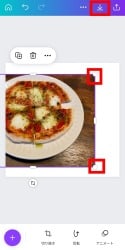 すると画像が画面に表示されるので、白枠からはみ出ないように尚且つ画像が切れないように〇部分をタップしてサイズ変更します。