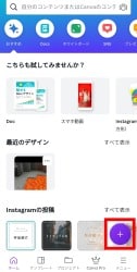 Canvaを開き右下の+をタップします。おすすめのメニューからInstagramの投稿をタップします。