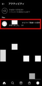 インスタのホーム右上にある♡をタップします。○○からライブ動画へ招待がありましたをタップします。