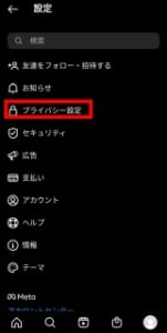 次にプライバシー設定をタップします。次のメニューでライブをタップしましょう。