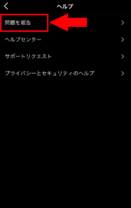 設定画面からヘルプを選び、次に問題を報告をタップします。