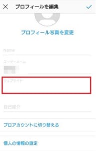 インスタの調子が悪い時は、下記の手順を参考にプロフィールのURLを削除して様子を見てみましょう。