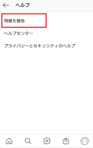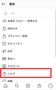 インスタでヘルプセンターに問い合わせるには、まずプロフィールタブを選択しメニューアイコンをタップしてください。