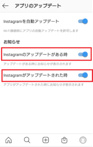 また、インスタのアップデート更新のお知らせをオンにしても良いでしょう。