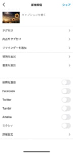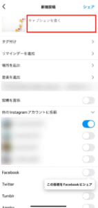 下書き保存のためにはテキストの入力が必要なケースがあるため、キャプションを書くをタップしてテキスト入力を行なってください。