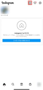 手順としては、インスタを起動して新規投稿作成アイコンをタップします。