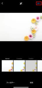 画像のフィルターを変更できる画面が表示されるので、変更して次へをタップします。