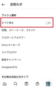 「プッシュ通知欄」にあるすべて停止をタップしてオンにしてください。