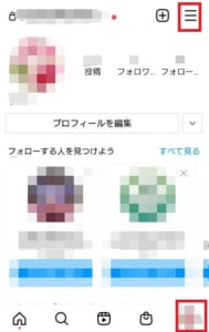 プロフィールタブからメニューアイコンを選択して設定をタップしてください。