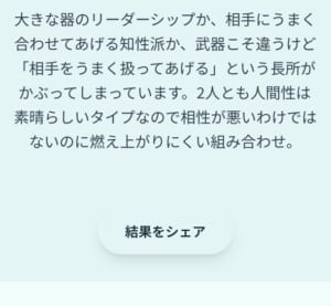 彼氏や好きな人などの結果を聞いて、相性を見ることも出来ます。