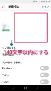 そのため、インスタで140文字を超える文字で投稿した場合、Twitterにはシェアされないようになっています。