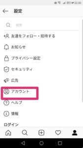 設定とプライバシーのメニューから「アカウント」をタップしましょう。