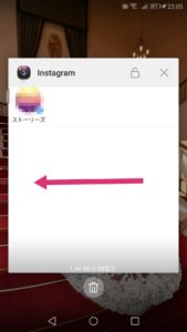 そうすると、上に「アンインストール」が表示されるのでインスタのアプリをドラックして「アンインストール」まで引っ張っていくと削除できます。